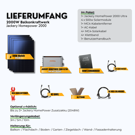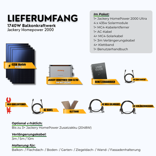 1740 Watt Jackery Homepower 2000 Ultra Balkonkraftwerk 1500W AC