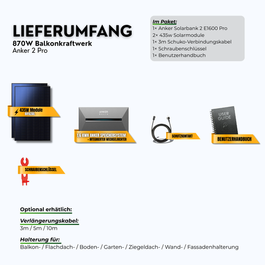 870 Watt Anker Pro 2 E 1600 Balkonkraftwerk