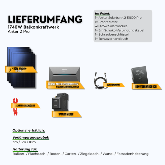 2.000W Anker 2 Pro Balkonkraftwerk Halterungen und Solarkabel Zubehör wählbar