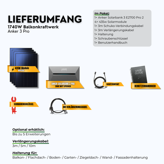 1740 Watt Anker Solix Pro 3 Balkonkraftwerk + Erweiterungsakku 5,4Kwh