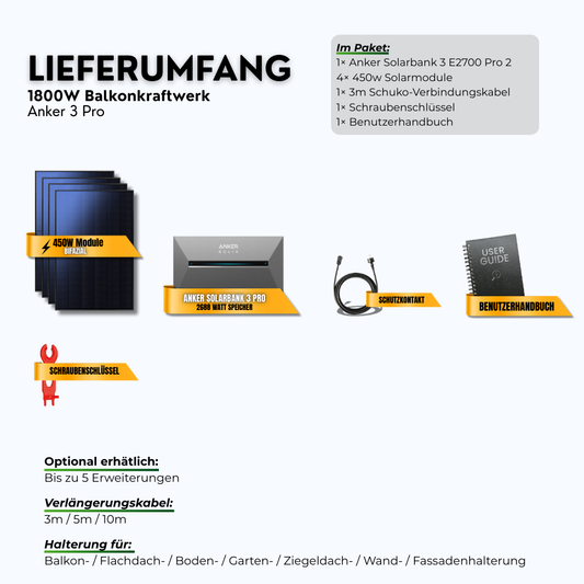1800W Anker 3 Pro Balkonkraftwerk + Erweiterungsakku