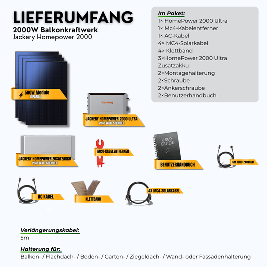 2000 Watt Jackery Homepower 2000 Ultra Balkonkraftwerk 4kWh