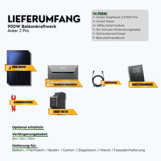2.000W Anker 2 Pro Balkonkraftwerk Halterungen und Solarkabel Zubehör wählbar
