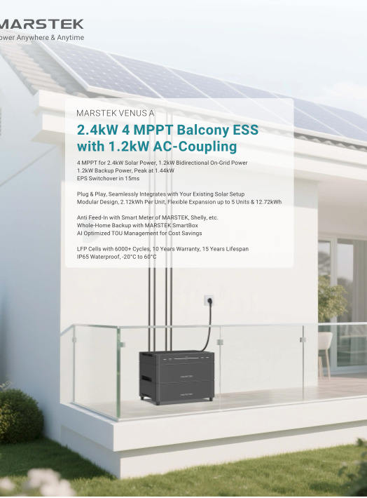 2,4 kW Balcony ESS mit 4 MPPT und 1,2 kW AC-Coupling