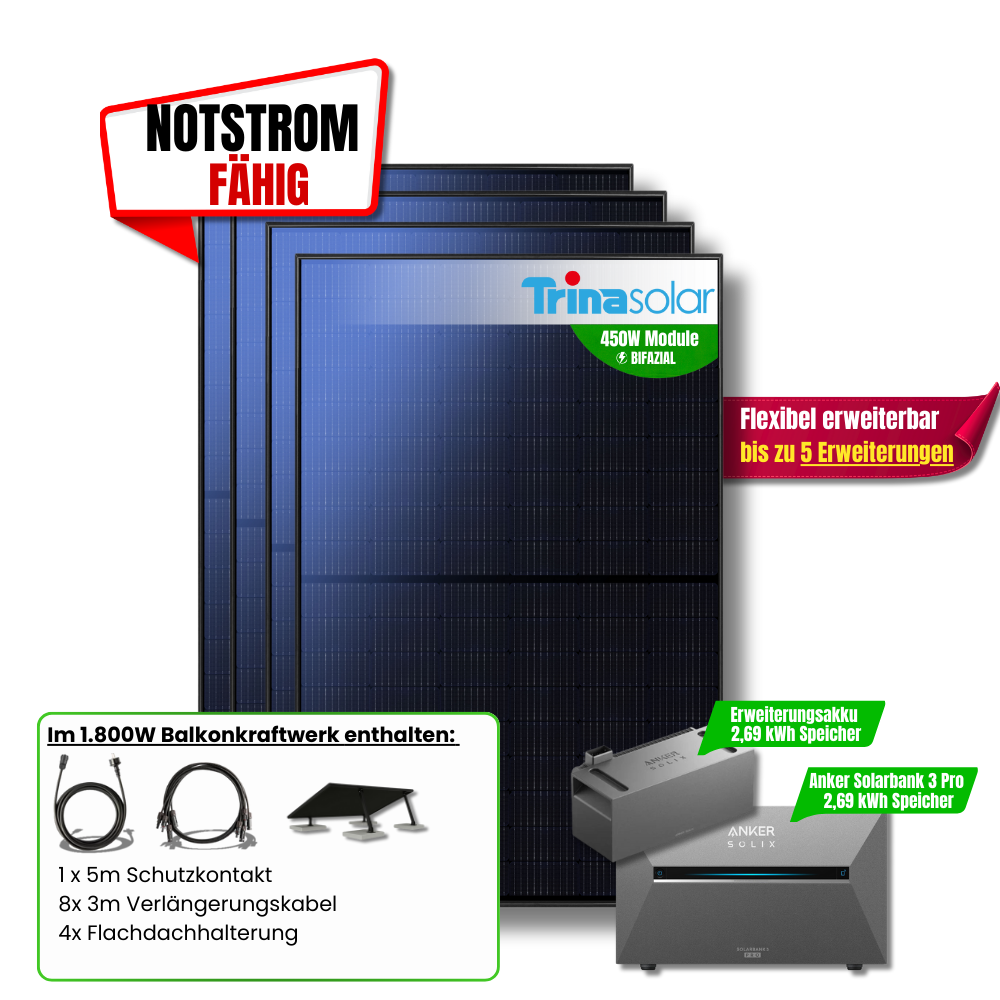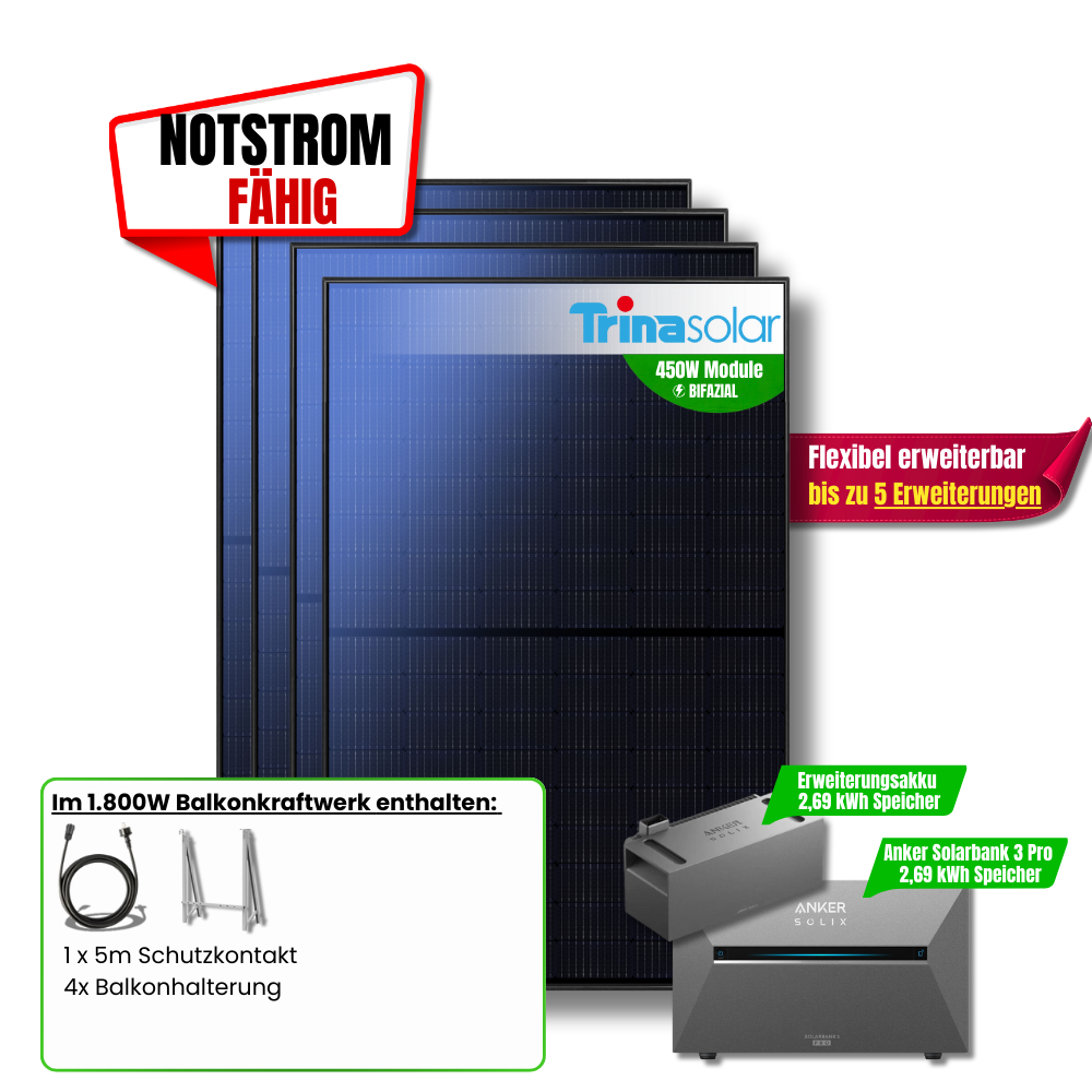 ⚡ 1800 W Anker Pro 3 Balkonkraftwerk mit 2,69 kWh Speicher + Zusatzakku