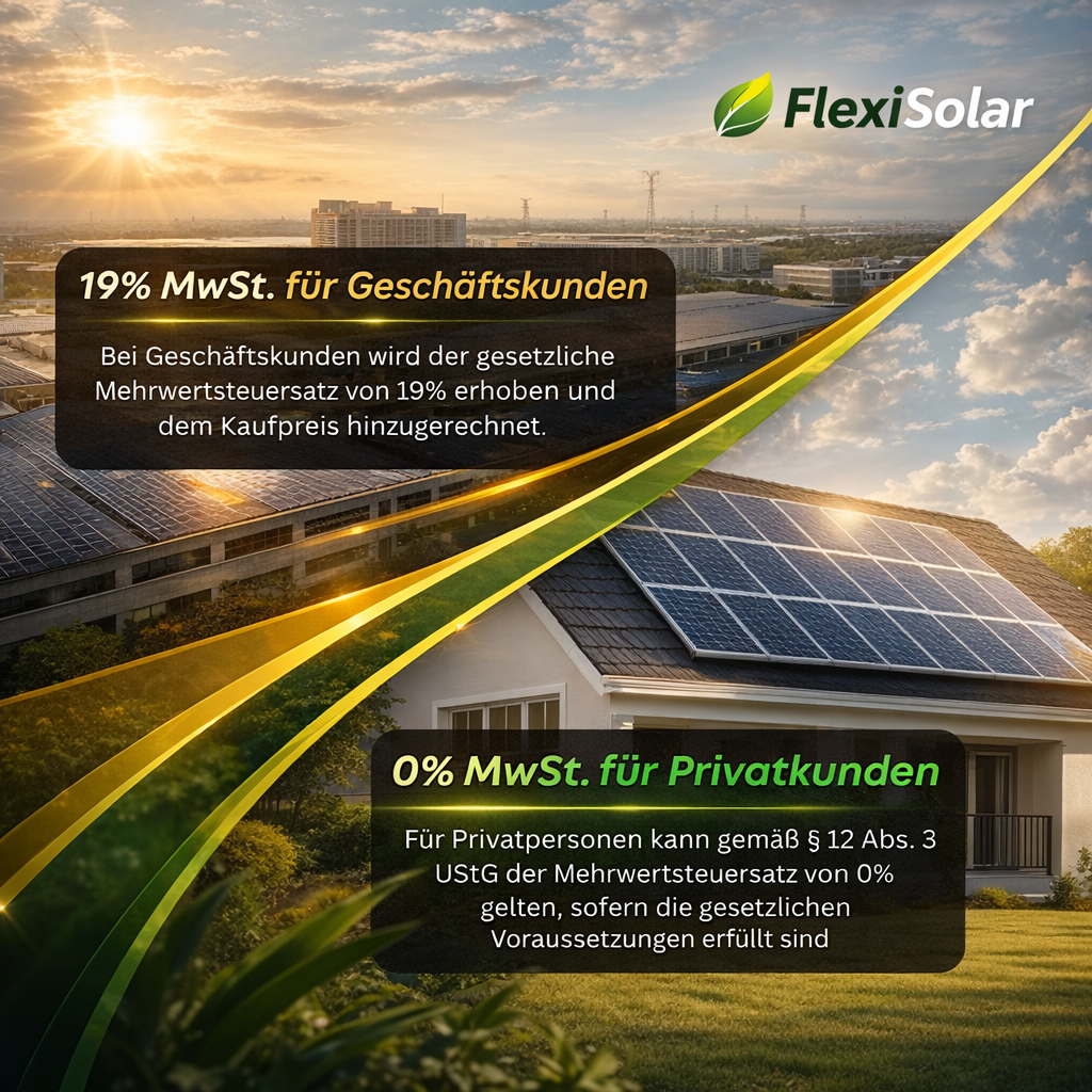 Mit der Auswahl des 0% Mwst. Artikels bestätigen Sie, dass die Voraussetzungen nach §12 Abs. 3 UStG für den Kauf und die Lieferung von PV-Komponenten zum Steuersatz von 0% erfüllt sind.