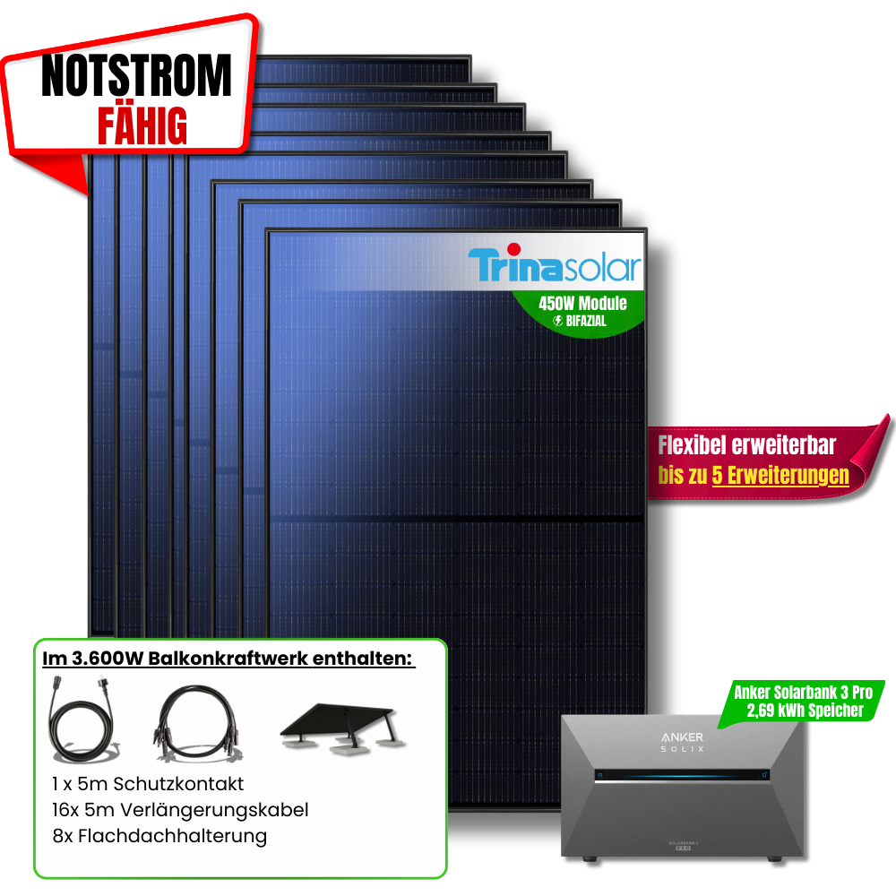 ⚡ 3600 W Anker Pro 3 Balkonkraftwerk mit 2,69 kWh Speicher