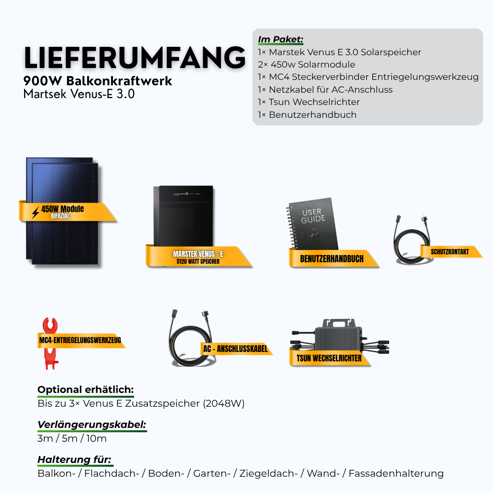 ⚡ 900 W Marstek Venus E 3.0 Balkonkraftwerk mit 5,12 kWh AC-Speicher
